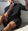 INCERUN男式短裤运动套装短袖T恤和短裤Loungwear健身房运动套装套装(西式)