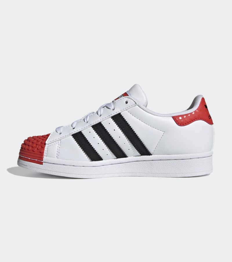 Style, fun and comfort is not a bad combination to have. Superstar LEGO® shoes feature iconic 3-Stripe branding and playful design details with LEGO brick-inspired texture on the shell-toe and heel-tab. Comfortable sockliners have been designed to allow for wearing around the clock – ideal for patio-to-playground scenarios.