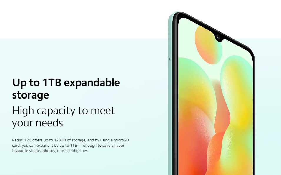 Xiaomi Redmi 12CKey Features AI Dual Camera Camera Samples Powerful Processor Enhanced SmoothnessMicroSD Card Support Go Big On Entertainment5000mAh Massive Battery Rear Fingerprint Sensor