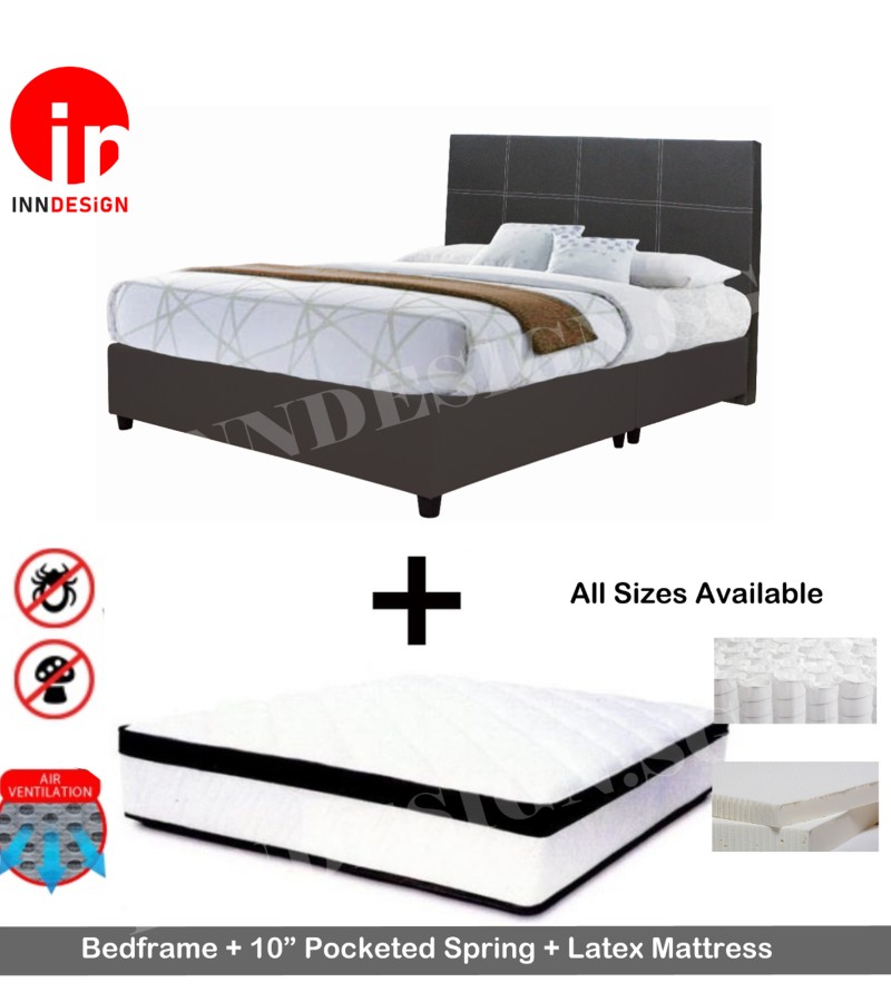 [COMBO套装]10英寸袋装弹簧,带乳胶床垫+床架(10年保修)[所有尺寸可选]